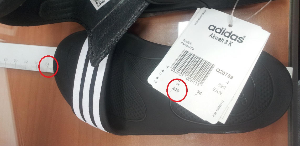 27일 경남 거창군 거창읍에 사는 박 모(남.38세)씨에 따르면 그는 지난 5월 초등학교 3학년인 아들의 선물로 아디다스 샌들을 3만9천원에 구입했다. 아동용 제품으로 아들 발사이즈에 맞춰 230mm를 고른 박 씨.