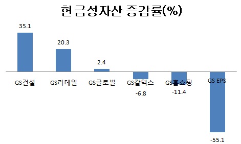 GS건설은 올 들어 현금성 자산을 35.1%나 늘렸지만 유무형자산 취득액은 2.7% 감소했다.