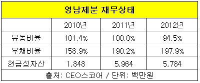 이로 인해 모기업인 영남제분도 재무건전성이 크게 악화된 상태다.