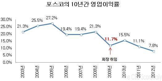 과거 철강업계 자존심을 지키며 때로는 높은 콧대를 세워 고객사들로부터 소리 없는 비판을 받아왔던 시절도 있었다. 정 회장의 4년간의 활동은 국민기업으로 탄탄대로를 걸었던 고(故) 박태준 명예회장으로부터 전임인 이구택 회장의 시대에서 벗어나 새로운 패러다임으로 전환해야 최고 기업으로 남을 수 있다는 의지를 보여주고 있다.