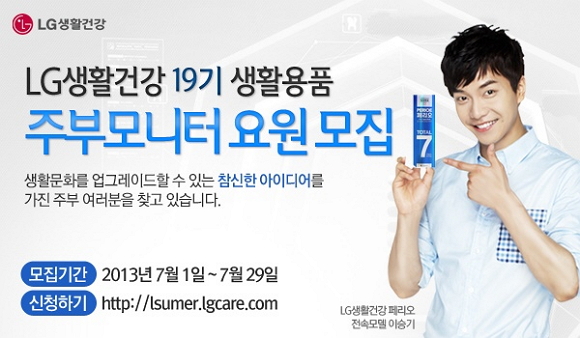 [소비자가만드는신문=장지현 기자] LG생활건강(대표 차석용)이 오는 29일까지 생활용품 브랜드의 신제품 제안 및 평가에 참여할 하반기 주부 모니터 요원을 모집한다고 2일 밝혔다.