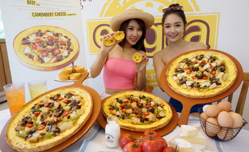 신제품 ‘에그타’피자는 피자업계에서 최초로 가장자리 부분에 유럽식 디저트인 에그 타르트를 적용한 것이 특징이다. 토핑 역시 소고기 스테이크가 까망베르 치즈와 어우러져 고소한 풍미를 느낄 수 있다.