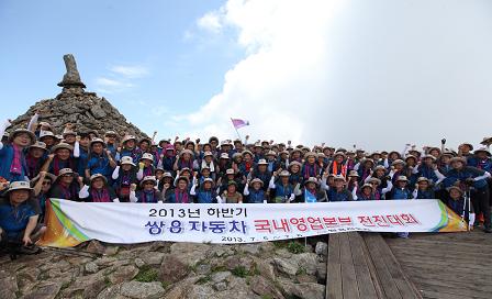 <사진>쌍용차 임직원 및 대리점 대표 등 250여명이 지리산 노고단에서