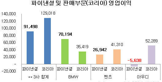 19일 금융감독원 자료를 분석한 결과 BMW와 메르세데스벤츠, 아우디폭스바겐 3사가 지난해 국내 파이낸셜사업으로 거둔 매출은 총 9천980억6천만 원으로 전년 대비 20%나 증가한 것으로 집계됐다. 이 가운데 리스 수익이 8천401억 원으로 84.2%를 차지했다.