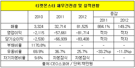 금융감독원에 따르면 티몬은 2010년부터 2012년까지 매출은 폭발적으로 늘어났지만 영업이익과 당기순이익에서 모두 적자를 냈다.