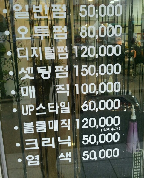 2년 만에 펌을 하려고 동네 미용실을 찾은 박씨는 현관에 펌 5~15만원, 클리닉 5만원, 염색 5만원 등의 항목별 가격이 부착돼 있어 20만원이면 충분할 것으로 예상했다.