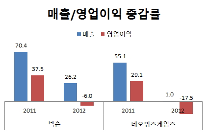 네오위즈게임즈는 2012년 들어 매출 증가율이 1%에 그치고 영업이익은 17.5% 감소하며 위기를 겪고 있다.