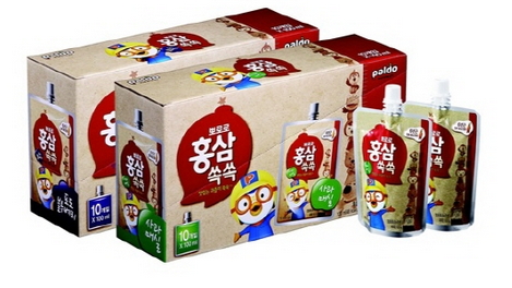‘뽀로로 홍삼쏙쏙’은 100ml의 용량에 소비자가격은 1천원이며 10개 들이가 한 세트다.