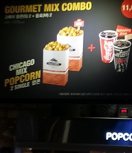 메뉴 보드에 있는 여러 종류의 팝콘 중 봉지 가득 꽉 찬 ‘고메 믹스 콤보’를 주문했는데 정작 받아든 팝콘은 봉지의 절반가량만 채워져 있었다.