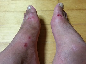 13일 경기 김포시 풍무동에 사는 이 모(남.57세)씨에 따르면 그는 지난 3일 휴가 때 샌들을 신었다가 피부 일부분이 까지고 피가 나는 고통을 겪었다.