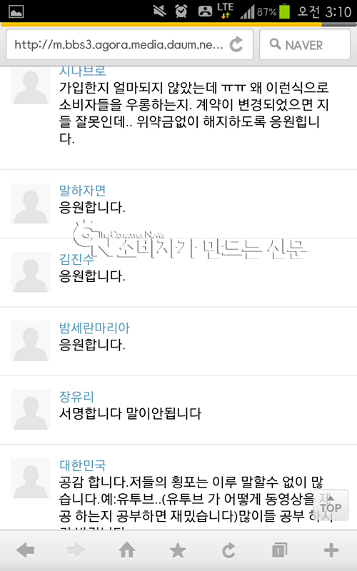 소비자가 만드는 신문에도 지상파 다시보기 관련, 케이블TV나 IPTV업체들의 일방적인 계약변경을 성토하는 글들이 쏟아지고 있다.