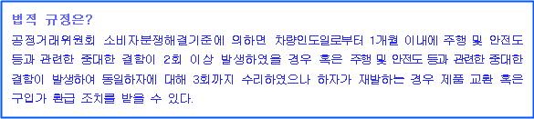 현실적으로 신차 교환은 제조사의 절대적 권한이라 업체 측 과실이 명백하다 할지라도 해결이 쉽지 않아 중재에 어려움을 겪게 된다.