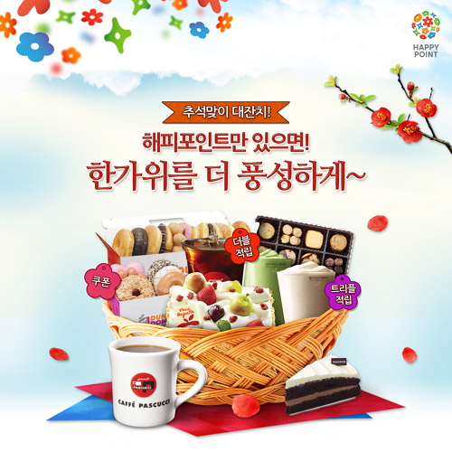 이번 이벤트는 추석시즌 기간 동안 파리바게트, 배스킨라빈스, 던킨도너츠, 파스쿠찌, 잠바주스, 빚은, 라그릴리아, 퀸스파크 등 SPC그룹 계열의 해피포인트카드 가맹점 이용 시 평소의 2~3배에 이르는 포인트 적립 혜택을 제공하는 행사다.