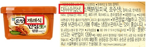 된장의 주원료가 되는 대두는 CJ제일제당 해찬들, 대상 청정원등 대부분의 식품업체들이 수입산을 사용하고 있지만 포장 전면의 재래식, 전통등만 본다면 소비자들은 당연히 국산 재료를 사용한 제품이라고 인식하게 될 가능성이 높다.