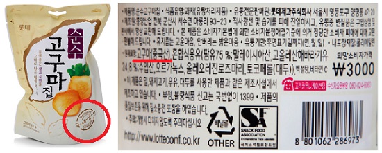 롯데제과의 순수 고구마칩은 고구마 함유율이 83%로 웰빙 과자임을 표방하고 국내생산을 강조하고 있지만 실상은 중국산 고구마를 사용하고 있다. ‘웰빙’과 ‘국내 생산’이라는 문구를 함께 매치해 마치 국내산 고구마로 만든 건강 스낵의 느낌을 풍기도록 유도했음을 유추할 수 있다.