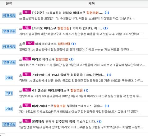 소비자가 만드는 신문이 운영하는 소비자고발센터에도 " 유명 쇼호스트가 스테로이드가 들어가지 않았다”, “천연성분으로 만들어졌다”, “남편에게도 바르도록 했다”, “얼굴 전체에 매일 듬뿍 바르고 자기만 된다”, “내부적으로 검사한 믿을 수 있는 제품” 이라는 홈쇼핑 광고를 믿고 제품을 구매했다가 피해를 입었다는 하소연이 줄을 잇고 있다.