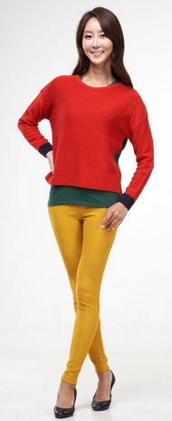 굵은 실로 부풀게 짠 ‘로우 게이지(low gage)’ 스웨터로 풍성하고 캐주얼한 느낌을 살리는 한편, 짜임새가 촘촘한 아크릴 원단을 사용해 보온성을 높였다. 색상도 ‘핑크’, ‘민트’ 등 총 15가지로 다양하게 구성했으며, 단색 스타일 외에 앞면과 뒷면아 다르게 배색된 형태의 스웨터를 선보이는 등 컬러를 강조했다.