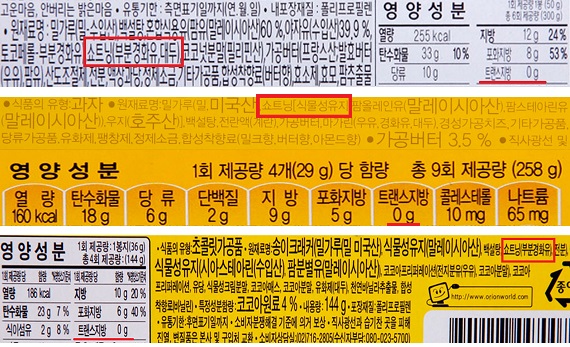 때문에 과자 겉면에 트랜스지방 표기가 0g이라 할지라도 쇼트닝 등 부분경화유, 정제가공유지 등을 재료로 만들었다면 트랜스지방 섭취에서 완벽히 자유로울 수 없다.