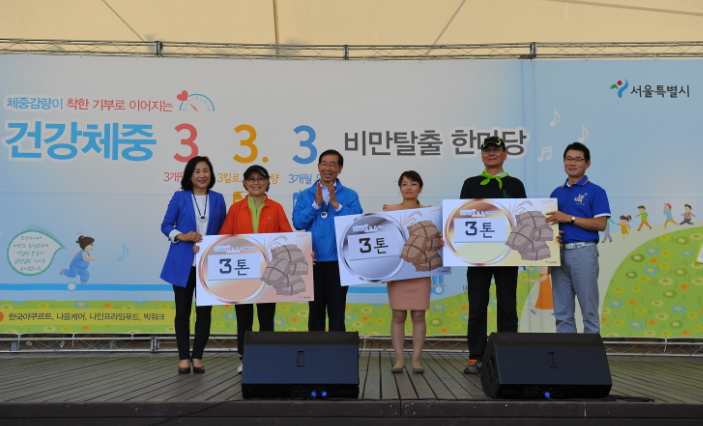 이번 기부는 서울시민 3천명이 3개월간 몸무게 3kg씩을 감량하는 '건강체중 3.3.3 프로젝트의 결과에 따라 진행됐다.