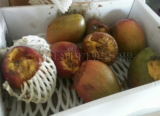 택배가 도착할 무렵 지인으로부터 애플망고가 엉망인 상태로 배송됐다는 연락을 받았다. 지인이 보낸 사진을 보니 가관이었다. 상자는 찢어져 있고 애플망고는 벌레인지 쥐인지 모르게 파먹어 도저히 먹을 수 없는 지경이었다.