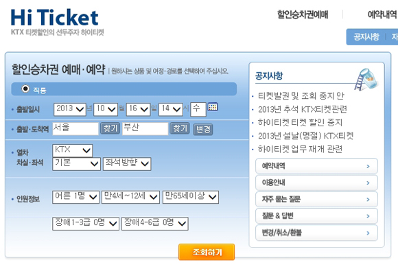 먼저 코레일 공식 홈페이지에 들어가 봤지만 날짜가 며칠 남지 않은 탓인지 이미 매진이었고, KTX 티켓 할인 업체인 하이티켓에서는 늦게까지 표가 남아있다는 소문을 듣고 접속해 구매한 것이었다.