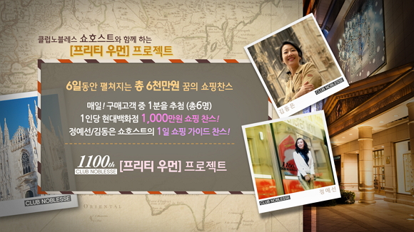 아울러 현대홈쇼핑은 이번 1100회 특집을 맞아 '프리티우먼'이라는 1천만원 상당의 퍼스널쇼퍼 백화점 쇼핑 경품을 마련했다.