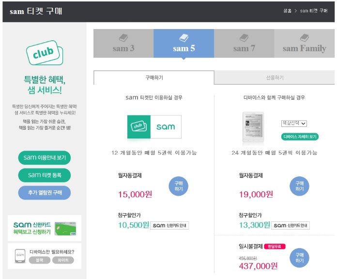 ▲교보문고의 전자책서비스 'SAM' 티켓 구매 화면 캡처