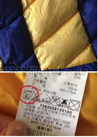 올 초에 네파 겨울점퍼를 구입한 김 씨. 구입 당시 점원으로부터 “손세탁이 가능하다”는 안내를 받았고 제품 라벨에도 손세탁 기호가 있어 평소처럼 손빨래를 했다.