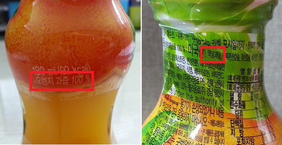 과즙 100%로 유명한 한국코카콜라음료의 미닛메이드 오렌지100 플러스는 '오렌지과즙 100%'로 표기해 별도의 첨가물이 전혀 없는 것처럼 착각을 불러일으키지만 원재료를 살펴보면 액상과당을 비롯해 말토덱스트린, 천연착향료 등 첨가물이 함유되어 있다.