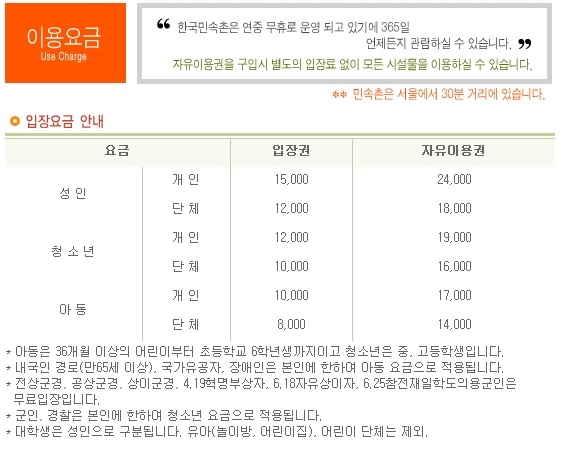 한국민속촌 방문 시 ‘36개월 미만 영아 무료입장’ 기준은 가족 단위 구성일 경우만 적용되는 것으로 확인됐다.