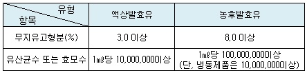 액상발효유와 농후발효유는 축산물의 성분규격에 따라 최소 함유해야 할 유산균 수의 기준이 정해져 있다. 액상발효유는 1㎖당 1천만 마리 이상, 농후발효유는 1㎖당 1억 마리 이상의 유산균이 존재해야 한다.