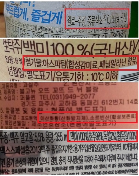 특히 주류 중 소주의 원료 표기가 크게 부실하다.