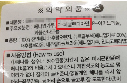 100% 천연 성분으로 알려진 헤나 염색약에는 화학 성분이 포함돼 알러지 반응을 일으킬 수 있지만 소비자들이 간과하기 쉽다. 천연 성분이라는 점만 강조하기 때문이다. 발암물질로 알려진 ‘P-페닐렌디아민’ 등 화학 성분이 포함됐다는 사실을 알기 위해서는 일일이 주요성분을 확인해야만 한다. 천연 성분이라는 표시만 믿고 썼다가는 예상치 못한 부작용으로 고충을 겪을 수 있다는 얘기다.