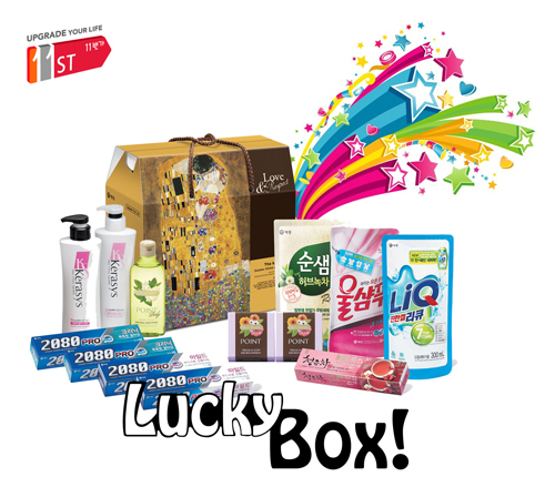 설 럭키박스는 대표적인 생활용품 브랜드 ‘LG생활건강’과 ‘애경’ 등 두 가지 종류로 나뉜다. LG 럭키박스를 구입하는 전 고객에게는 기본 구성품에 샴푸, 치약, 바디워시 등 3가지 생필품을 추가로 증정한다. 또한 구매 고객 중 추첨을 통해 ‘ES 블랙 미라클 오일에센스’도 제공한다.