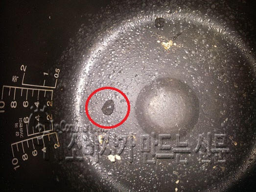 전기밥솥 내솥 바닥에서 정체를 알 수 없는 기포가 생기고 있어 소비자가 의문을 제기했다.