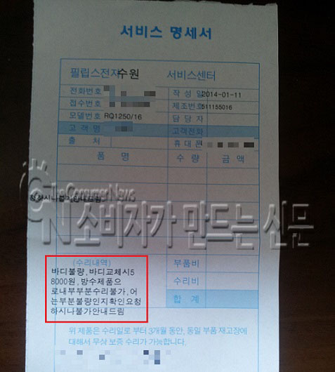 이에 대해 필립스전자 측은 소형가전의 본체 불량은 모듈 자체를 교체하는 서비스로 일괄 적용하고 있다고 밝혔다.
