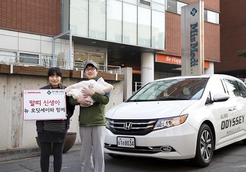 혼다코리아는 미즈메디병원 강서점과 연계해 이 병원에서 태어난 아기와 그 가족을 'All New 오딧세이'로 집까지 안전하게 의전하는 시승 프로그램을 진행했다.