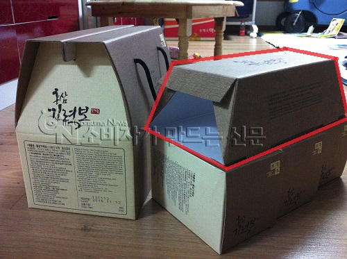 개봉한 상자에는 홍삼제품이 가득 들어 있을 거란 기대와 달리 50%는 포장용 박스로 채워져 있고 정작 상품은 밑바닥에 깔려 있었다.
