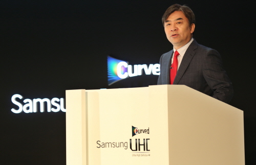 ▲김현석 삼성전자 부사장이 20일 서울 삼성전자 서초사옥에서 가진 삼성 커브드 UHD TV