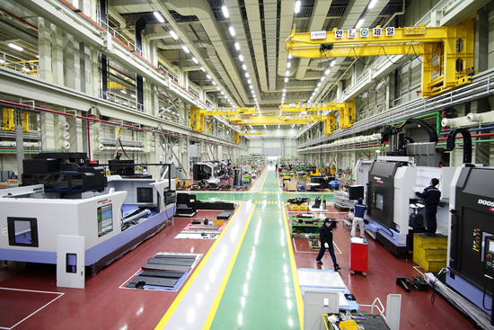 대형 공작기계는 가공과 조립이 어려워 대형 기종에 최적화한 생산 인프라가 필요하다. 두산인프라코어는 대형기에 적합한 공장 설계와 정밀 가공 장비, 설비를 갖춰 생산성과 효율성을 높였다.