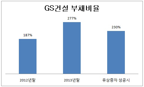 그만큼 GS건설의 상황이 긴급하다. 2012년 말까지만 해도 187%였던 부채비율이 지난해 말 277%로 껑충 뛰었다. 부채규모가 7조5천억 원에서 9조2천억 원으로 눈덩이처럼 불어났기 때문이다.