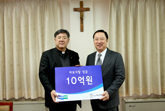 URL복사 기사공유하기 스크랩 프린트 메일보내기 글씨키우기 두산그룹(회장 박용만)은 26일 서울 명동성당에서 조규만 재단법인 ‘바보의 나눔’ 이사장과 박용만 두산그룹 회장이 참석한 가운데 10억 원의 성금 전달식을 가졌다고 밝혔다. 재단법인 ‘바보의 나눔’은 고(故) 김수환 추기경의 사랑과 나눔의 정신을 이어가기 위해 2010년 설립된 전문모금기관으로 희망의 밥 나누기, 유산기부 운동 등 다양한 사회활동을 펼치고 있다. 두산그룹은 지난 2012년부터 매년 소외된 이웃을 위해 써달라며 ‘바보의 나눔’에 10억 원을 기부했다. [소비자가만드는신문 = 문지혜 기자] 저작권자 © 소비자가 만드는 신문 무단전재 및 재배포 금지 문지혜 기자 다른기사 보기 URL복사 기사공유하기 주요기사 LG그룹, 주주환원 드라이브...5000억 규모 자사주 소각, 배당 확대 테일러메이드 어패럴, 체온 유지·활동성 다잡은 ‘윈터 다운 컬렉션’ 출시 금호석유화학그룹, 시각장애인과 산행·취약계층 환경 개선 등 지속형 사회공헌 실천 LX하우시스 바닥재 3종, 업계 최초 ‘EPD-글로벌’ 인증 획득 "의료시설·학교에서도 안심"...시몬스, 실내 공기질 안전성 최고 등급 획득 농심, '얼어 죽어도 배홍동' 윈터 프로모션 실시...호주 멜버른 왕복항공권 등 경품 증정