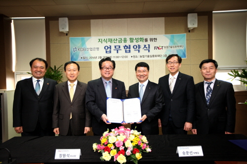 KDB산업은행(은행장 홍기택)이 농업기술실용화재단과 지난달 27일 '농·식품분야 지식재산금융 활성화를 위한 업무협약'을 체결했다.