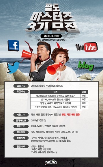 마스터즈는 마케팅과 서포터즈의 약자로 기존 ‘마케팅 서포터즈’에서 새롭게 변경했다. ‘팔도 마스터즈’로 선발되면 4월부터 6월까지 총 10주간 활동하게 된다.