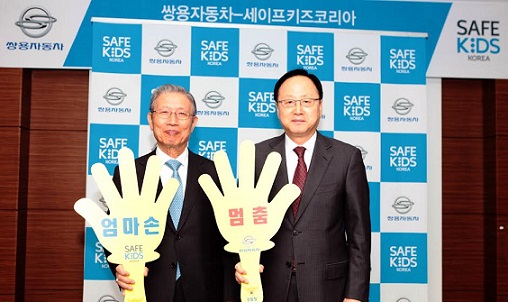쌍용차는 11일 역삼동 서울사무소에서 이유일 대표이사와 송자 세이프키즈코리아 공동대표를 비롯한 양측 관계자들이 참석한 가운데 어린이 교통안전 증진 활동 '엄마손 캠페인' 후원을 위한 업무협약식을 진행했다고 밝혔다.