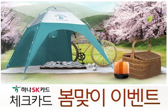 하나SK카드 홈페이지에 마련된 이벤트 페이지에서 ‘봄맞이 체크카드 이벤트’에 응모하는 모든 고객이 혜택을 받을 수 있다.