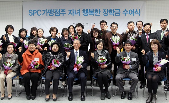 13일 SPC그룹(회장 허영인)은 지난 12일 양재동 사옥에서 ‘제4회 SPC 가맹점주 대학생 자녀 행복한 장학금 전달식’을 가졌다고 밝혔다.