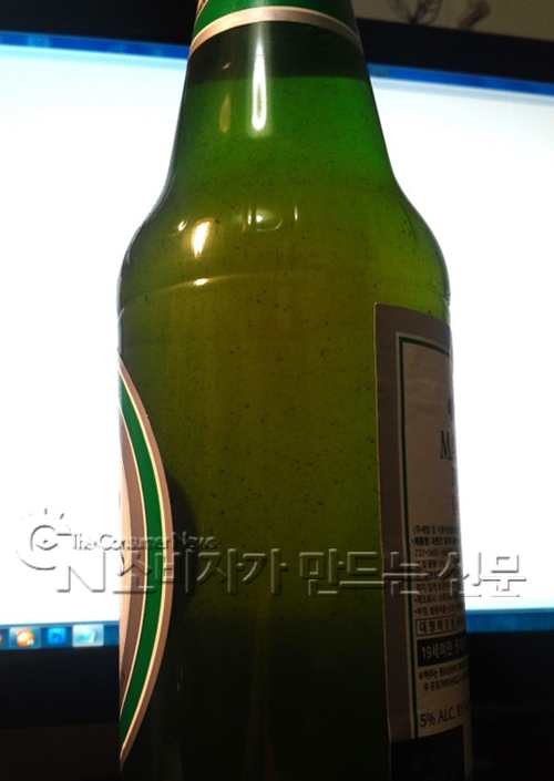 3일 후 저녁 식사를 마치고 냉장고에서 맥주를 꺼낸 황 씨는 깜짝 놀랐다. 맥주병을 빛에 비춰보자 정체를 알 수 없는 수를 셀 수 없이 많은 까만 이물질이 병 안에 둥둥 떠다녔기 때문.