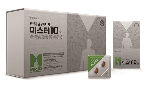 미스터10(텐)은 남성호르몬인 테스토스테론의 분비를 활성화시켜 갱년기 남성 건강에 도움을 주는 제품으로 식약처에서 개별인정을 받은 건강기능식품이다.