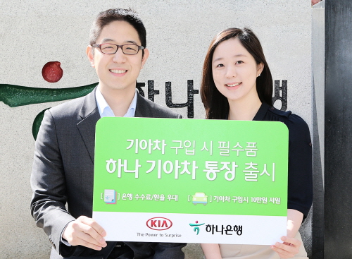 하나은행(은행장 김종준)이 기아자동차(대표 이형근·이삼웅)와 함께 기아차 구입 고객에게 최대 10만 원의 차량구입자금을 지원해주는 '기아차 통장'을 출시했다.